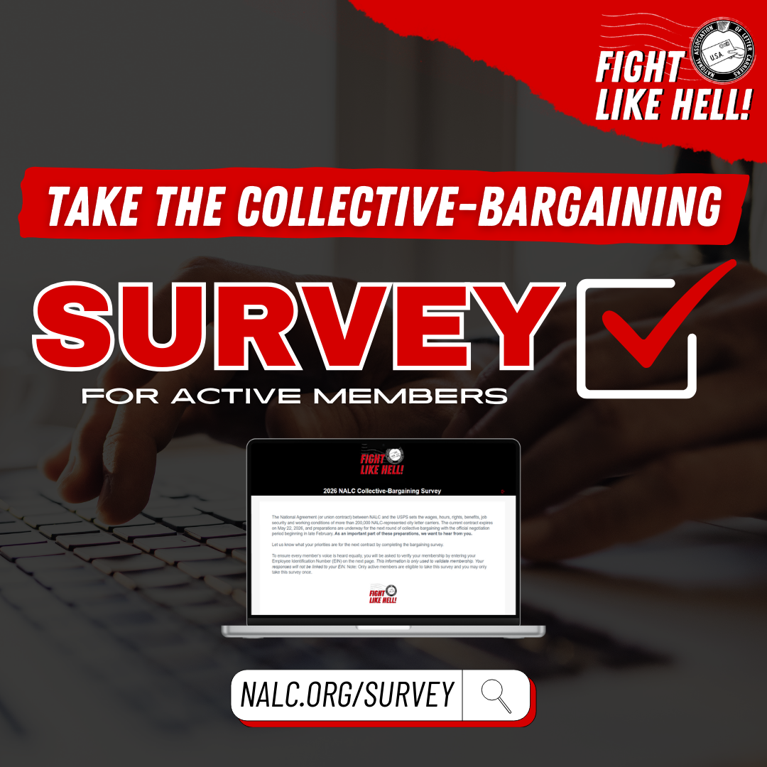 The 2026 NALC Collective-Bargaining Survey is now open to current active NALC members. Please let us know what your priorities are for the next contract by completing it. The survey will be open until Friday, Feb. 20.